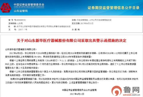 4月11日,山東證監(jiān)局發(fā)布《關于對山東新華醫(yī)療器械股份有限公司采取出具警示函措施的決定》《關于對趙毅新采取監(jiān)管談話措施的決定》《關于對許尚峰采取監(jiān)管談話措施的決定》和《關于對李財祥采取監(jiān)管談話措施的決定》。