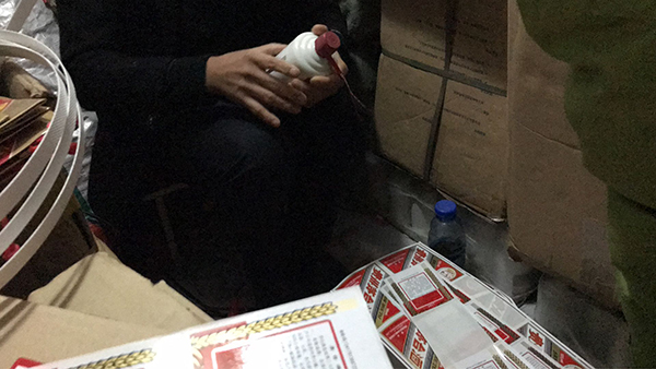 制假者在地下室里包裝假茅臺(tái)酒。