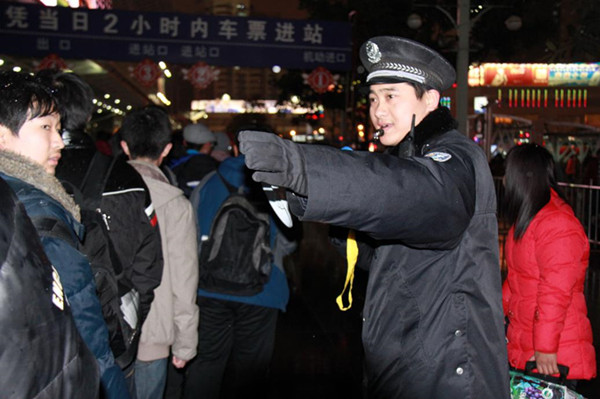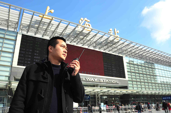周榮亮在維持旅客進站秩序
