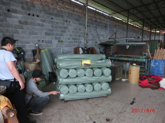 (圖說:2017年6月6日,警方端掉永州假LV生產窩點,查獲大量假皮料。)