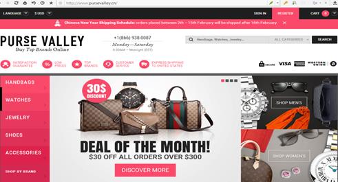(圖說:服務器位于海外的Pursevalley購物網站上充斥著大量假冒奢侈品。)