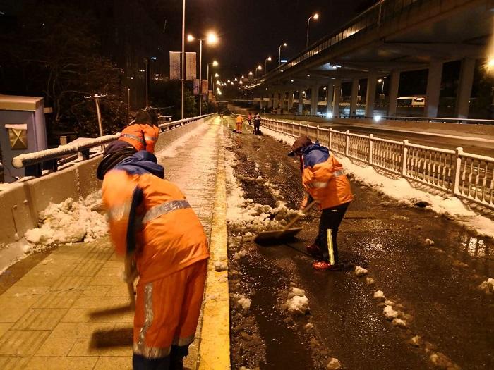 上海市人大代表、楊浦區殷行社區衛生服務中心主任崔明今天早上6時就出門,在家門口的寶山區高涇路看到了感人一幕:“天還未全亮,外面溫度很低,可是環衛工人已經清掃掉馬路的積雪了。這條路平時走的人就很少,但是環衛工人們一早就開始清掃,為上班的人留出一條安全干凈的道路。”