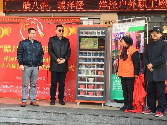 上海國際醫學園區集團有限公司總經理陸曉煒代表告訴記者,從昨天開始,浦東洋涇街道出現了一個3.0版的共享冰箱,在之前服務周邊居民區困難家庭的基礎上,更是輻射到了快遞員、外賣員、環衛工人等廣大戶外職工。冰箱里有水、方便面和臘八粥,經過簡單加熱后,他們就能在辛勞工作之余吃上一碗熱氣騰騰的臘八粥了。“雨雪天,戶外工作者們冒著嚴寒在外辛勤工作,保障了上海城市在雨雪天氣里正常運行,而這座冰箱專門為他們而設,讓他們也能在嚴寒中吃上新鮮溫暖的食物。”
