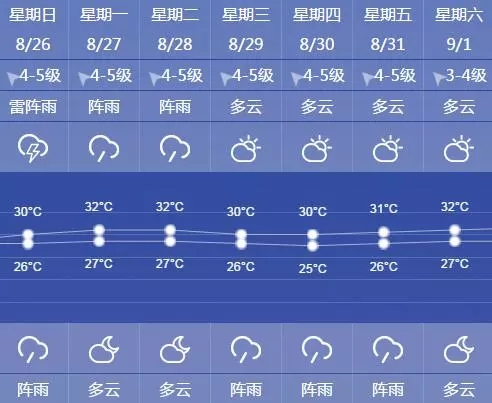 今天夜里陰有時有陣雨,明天陰到多云有陣雨或雷雨,局部地區雨量可達大雨程度。明天東到東南風4-5級陣風6級。氣溫在26-30℃。大家出行帶好雨具,注意交通安全。