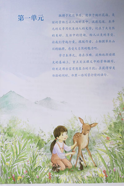 學生將在一學期中接觸10首古詩,其中,第4課和第12課各有3首古詩,在“課外古詩詞誦讀”部分則另有《逢雪宿芙蓉山主人》(劉長卿)等4首古詩。教材第六單元則通過《京劇趣談》《伯牙鼓琴》《書戴嵩畫牛》三篇課文帶領學生領略傳統文化之美。