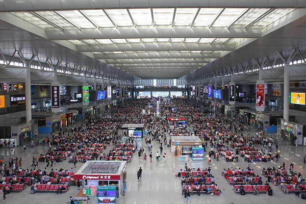 圖片說明:上海虹橋站,旅客在候車室內(nèi)有序候車