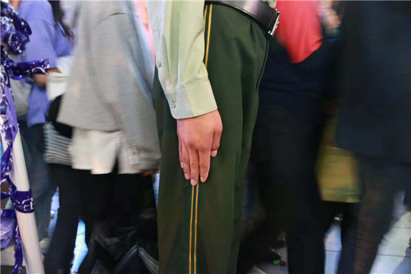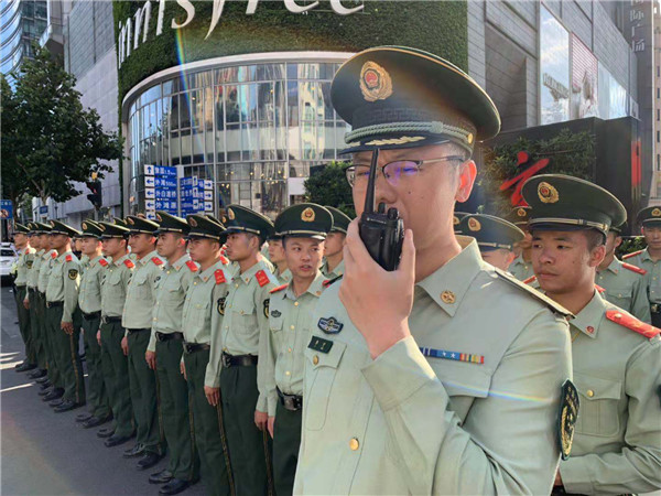 我們每天的執(zhí)勤時(shí)間將近12小時(shí),采取的是2班倒的模式,平均每人要在哨位上站至少6個(gè)小時(shí),人墻是1分鐘開(kāi)合1次,一次執(zhí)勤下來(lái)大概開(kāi)關(guān)30次。今年,是我第3次在南京路擔(dān)負(fù)國(guó)慶安保任務(wù),能在車(chē)水馬龍的南京路執(zhí)勤,保證國(guó)內(nèi)外游客的安全,我感覺(jué)很激動(dòng)也很自豪?