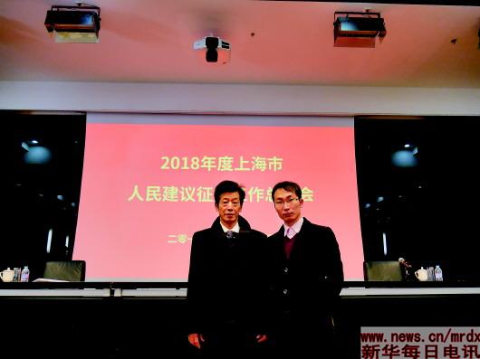 ▲虞國偉、王于杰兩父子一同參加2018年度上海市人民建議征集工作總結會。