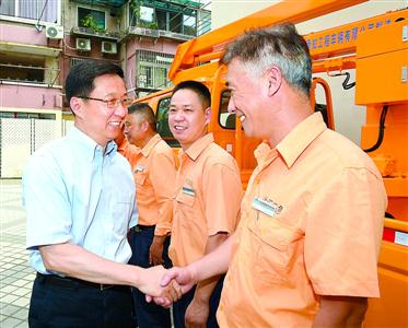 持續高溫,熱浪襲人。市委副書記、市長應勇一行首先來到黃浦路吉公司淮海中路清道班,該班組承擔淮海中路、茂名南路和龍門路的道路日常保潔任務,曾多次榮獲“上海市模范集體”等榮譽稱號。應勇與環衛工人們一一握手,關心詢問高溫天的作息安排,并對大家說:“城市的環境衛生離不開你們的辛勤付出,感謝你們,也向全市環衛工人表示慰問!”市領導特別關心環衛工人的休息條件,市綠化市容局相關負責人說,在市總工會等支持下,很多單位都主動為環衛工人提供休息場所,目前全市已有3500多個“愛心接力站”。