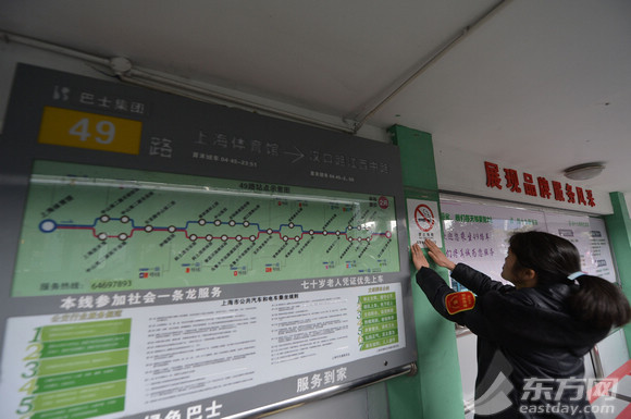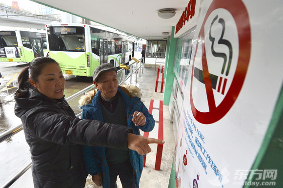 上海;公交終點站;張貼禁煙標識