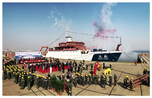 央廣網上海3月3日消息(記者吳善陽 通訊員屈琳琳)我國第一艘遠洋漁業資源調查船“淞航”號今天在天津下水,標志著國內最先進、噸位最大的漁業資源調查船主體工程勝利完工。下水后,“淞航”號將進入設備安裝調試、內部裝修階段,最終以優良的船舶性能和強大的科考功能服務大洋調查科考。