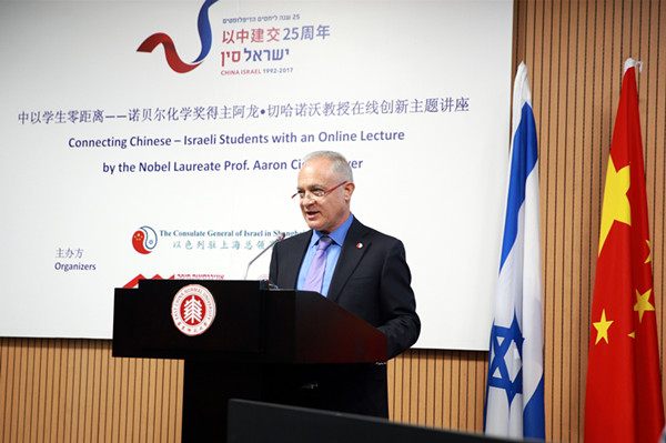 央廣網上海5月24日消息(記者傅聞捷)為紀念中以建交二十五周年,“中以學生零距離——諾貝爾化學獎得主阿龍·切哈諾沃教授在線創新主題講座”昨天在華東師范大學舉行。本次活動由華東師范大學、以色列駐上海總領事館和以色列海法大學聯合舉辦。