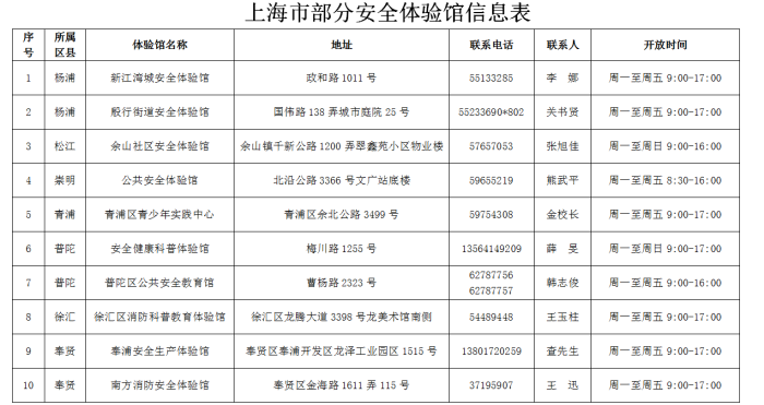 滬上部分安全體驗(yàn)館將開展“開放周”活動