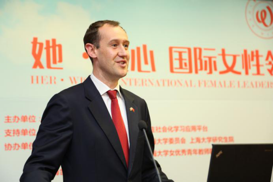 英國駐滬總領事館副總領事柯牧申在致辭中回憶了自己從軍官到外交官的發展經歷,表達了個人致力于支持女性走上領導崗位,發揮更積極作用的愿望,并且非常高興地看到她·匠心教育計劃可以取得如此優異的成績。