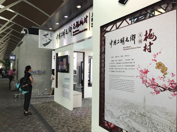 央廣網上海6月20日消息(記者傅聞捷 通訊員朱明瑜 陳敏)日前,“中國二胡之鄉”無錫梅村二胡文化展在上海浦東國際機場“鄉愁小棧”文化展廳開展。二胡演奏家陳莎莎現場演奏二胡名曲《賽馬》、《憶江南》,琴音悠揚、歡快,并展示特制中胡、阿炳曾用二胡復制品等一批精品二胡,吸引過往旅客駐足賞樂、賞琴。無錫二胡藝術家在機場空間內的演奏打破了民族音樂表演場所的界限,二胡藝術與上海浦東機場的“跨界”組合為中外旅客呈上了別開生面的文化體驗。