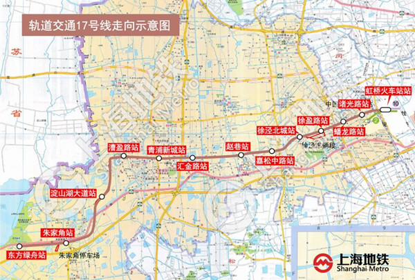 據了解,17號線全長35.3公里,全線共設虹橋火車站(與2、10號線換乘)、諸光路站、蟠龍路站、徐盈路站、徐涇北城站、嘉松中路站、趙巷站、匯金路站、青浦新城站、漕盈路站、淀山湖大道站、朱家角站、東方綠舟站13座,其中高架站6座、地下站7座。