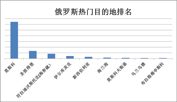哪些城市的市民更熱衷赴俄羅斯旅游?從報(bào)告發(fā)布的排名看,前十名是上海、北京、哈爾濱、廣州、深圳、成都、武漢、杭州、長(zhǎng)春、南京。