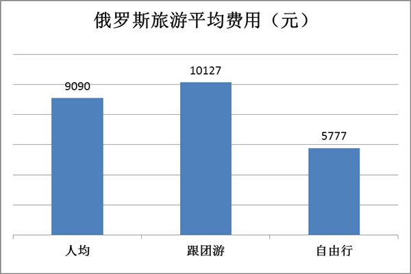 從費(fèi)用看,赴俄羅斯旅游人均費(fèi)用超過(guò)9000元,其中跟團(tuán)游平均10127元,自由行5777元。從北京等地出發(fā)的跟團(tuán)游線路,最低只需5000元左右,最高的超過(guò)3萬(wàn)元。