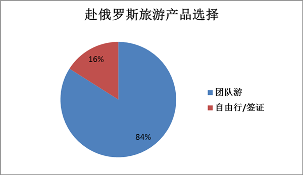 由于免簽的便利,大部分中國(guó)游客以跟團(tuán)的方式赴俄羅斯,占比達(dá)到84%。但自己辦理簽證、預(yù)訂自由行產(chǎn)品的旅游者也明顯增多。
