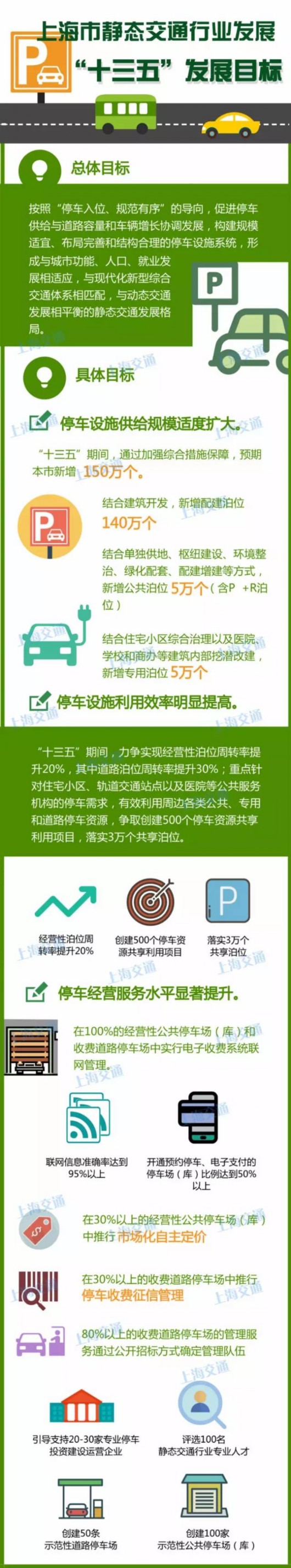 據(jù)上海發(fā)布,市交通委發(fā)布《上海市靜態(tài)交通行業(yè)發(fā)展“十三五”規(guī)劃》:①“十三五”期間預(yù)期本市將新增150萬個泊位;②力爭實現(xiàn)經(jīng)營性泊位周轉(zhuǎn)率提升20%,其中道路泊位周轉(zhuǎn)率提升30%;③提升經(jīng)營性公共停車場(庫)經(jīng)營服務(wù)水平;④利用既有的公共、道路、專用等各類停車資源向周邊住宅小區(qū)、醫(yī)院、學(xué)校等錯時開放共享,同步促進充電設(shè)施分時共享;⑤開展公共停車場(庫)收費管理區(qū)域試點,修訂完善本市公共停車收費管理規(guī)定;⑥進一步加大停車綜合治理力度。看下文get規(guī)劃要點吧