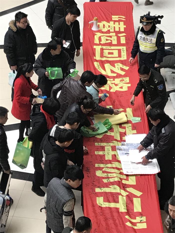滬渝交通執(zhí)法部門聯(lián)合在上海長途總站進行安全宣傳服務