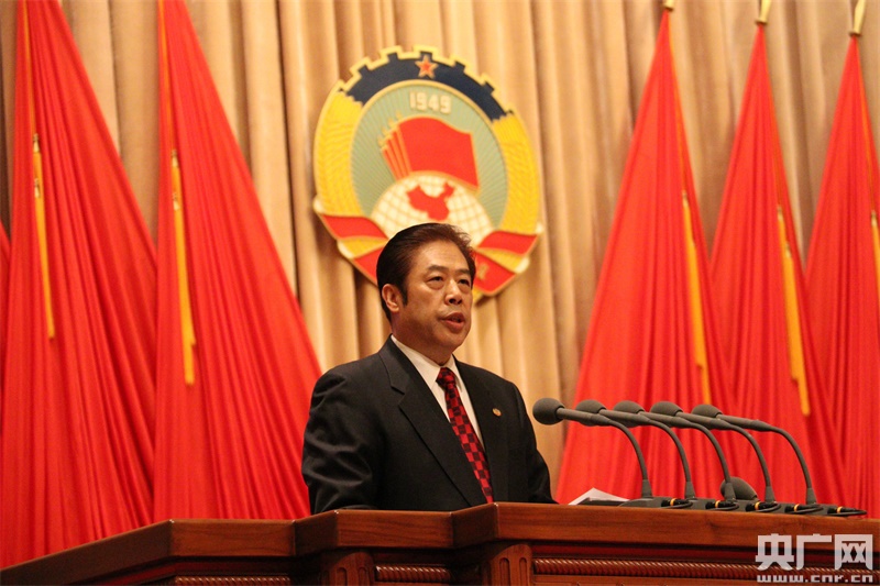 吳志明代表政協上海市第十二屆委員會常務委員會,向大會報告工作。
