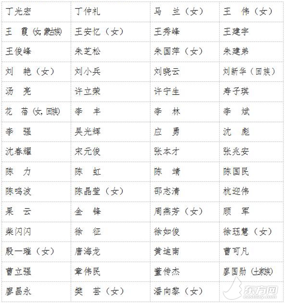 上海選舉產生十三屆全國人大代表名單(59名,按姓氏筆畫為序):