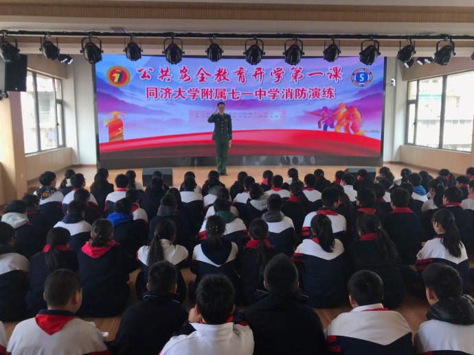 演習(xí)開始前,上海市公安局消防總隊(duì)的趙錦禎警官來到同濟(jì)大學(xué)附屬七一中學(xué)現(xiàn)場講解,與全體師生開展互動(dòng),向?qū)W生們教授了如何正確撥打“119”火警電話和火災(zāi)后的自救自助演練。