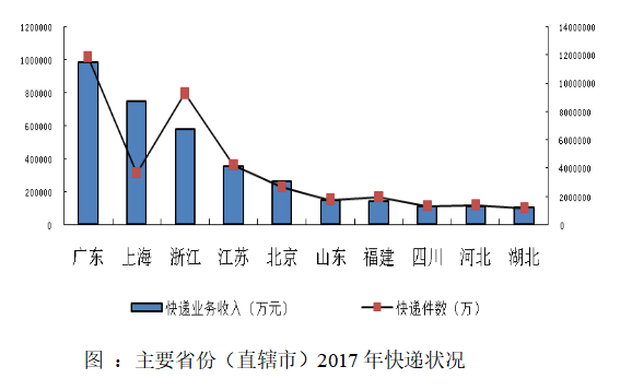 據統(tǒng)計,近十年來,我國快遞行業(yè)的業(yè)務量年均增長速度超過了40%,由2006年的十億件左右增長至2017年400.6億件左右, 快遞業(yè)務量占全球業(yè)務量的一半以上,已經成為全球最大。同時2017年我國快遞行業(yè)收入達到了4957.1億元人民幣。根據國家郵政局《2017年郵政行業(yè)發(fā)展統(tǒng)計公報》的數(shù)據顯示上海2017年的快遞業(yè)務量為31.15億件,快遞行業(yè)收入為868.89億元人民幣。