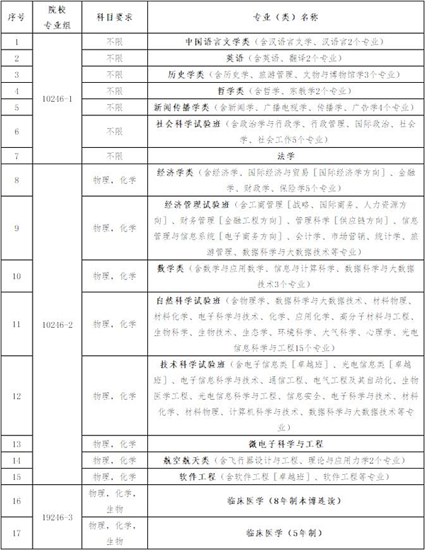 綜合評價批招生專業(yè)(類)院校專業(yè)組參考目錄和選考科目要求