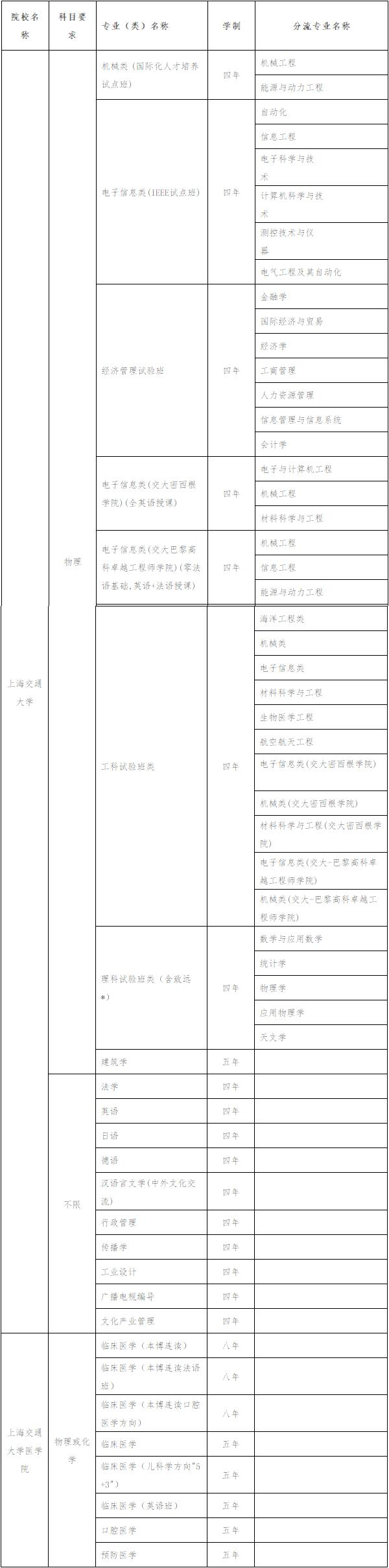 注:交大密西根學院、交大-巴黎高科卓越工程師學院、建筑學(五年制)、臨床醫(yī)學五年制(英語班)僅錄取有志愿的考生;