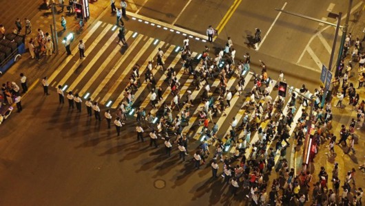 除了聞名遐邇的“開關(guān)式”過馬路模式于下午15時(shí)許開始啟用,記者還看到了位于南京東路、中山東一路路口處一條會(huì)發(fā)光的人行道——今年國(guó)慶剛剛啟用的新型行人過街提示系統(tǒng)。據(jù)黃浦警方介紹,這套提示系統(tǒng)由警示立柱和行人路面發(fā)光設(shè)施兩部分組成,行人警示立柱包括行人視頻監(jiān)測(cè)器、行人信號(hào)燈、行人過街提示屏、車輛通行燈光帶等設(shè)備;路面發(fā)光設(shè)施包括人行橫道燈光帶、人行道發(fā)光地磚、停車線發(fā)光帶等設(shè)備。“人行道發(fā)光地磚的顏色跟行人信號(hào)燈顏色同步,能更好地提示行人,尤其是一些低頭族,不要闖紅燈。”黃浦警方介紹,發(fā)光地磚由特殊材料壓制而成,表面粗糙度與瀝青路面相當(dāng),硬度與鋼板相當(dāng)。當(dāng)系統(tǒng)監(jiān)測(cè)到有行人闖紅燈時(shí),行人警示柱內(nèi)的定向擴(kuò)音器會(huì)自動(dòng)發(fā)出“您已紅燈越線,請(qǐng)退回等待”的提示音,同時(shí),配合抓拍行人違法的電子警察,顯示屏?xí)䦟?shí)時(shí)闖紅燈行人的圖像。