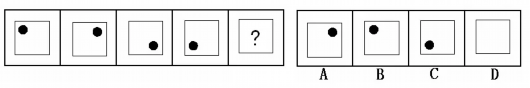 (答案:B。黑點在正方形中順時針移動。在第5個圖形中,應該正好移動到左上角。)