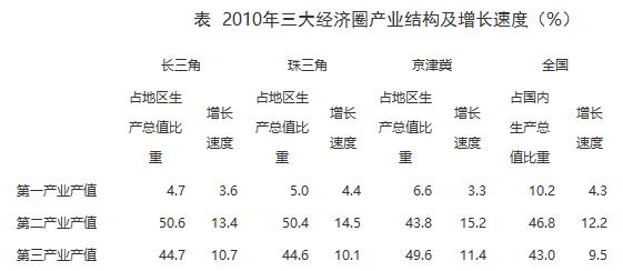三大經濟圈中,2010年三次產業增長速度均超過全國平均水平的有幾個?