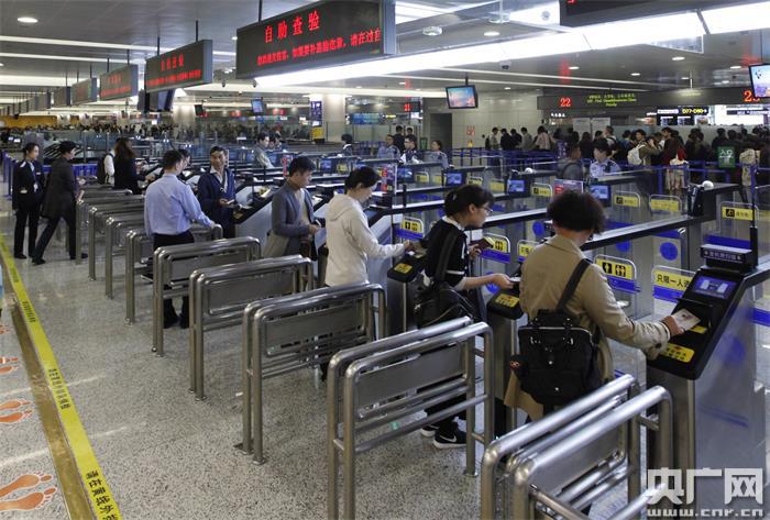 旅客正在新建的自助通道內自助通關。(央廣網發 鄧楠楠 攝)