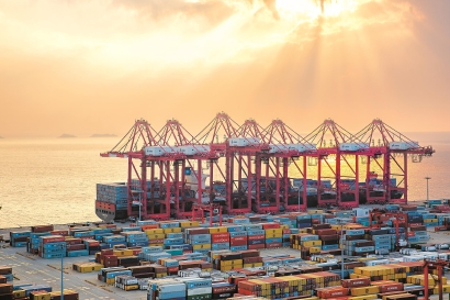 洋山深水港全自動(dòng)碼頭。視覺中國供圖