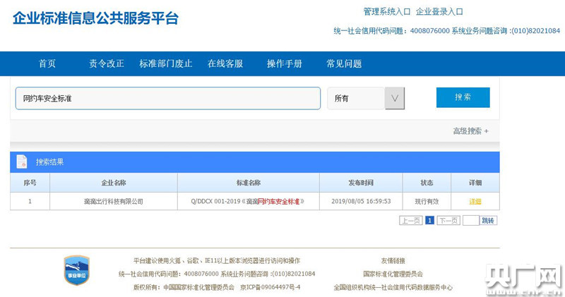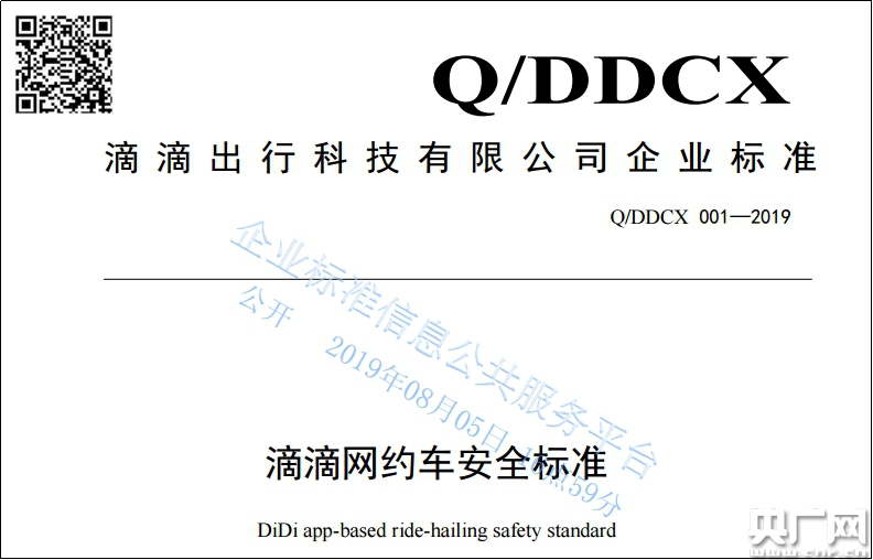 (滴滴出行在企業標準信息公共服務平臺發布《滴滴網約車安全標準》)(央廣網發 滴滴提供)