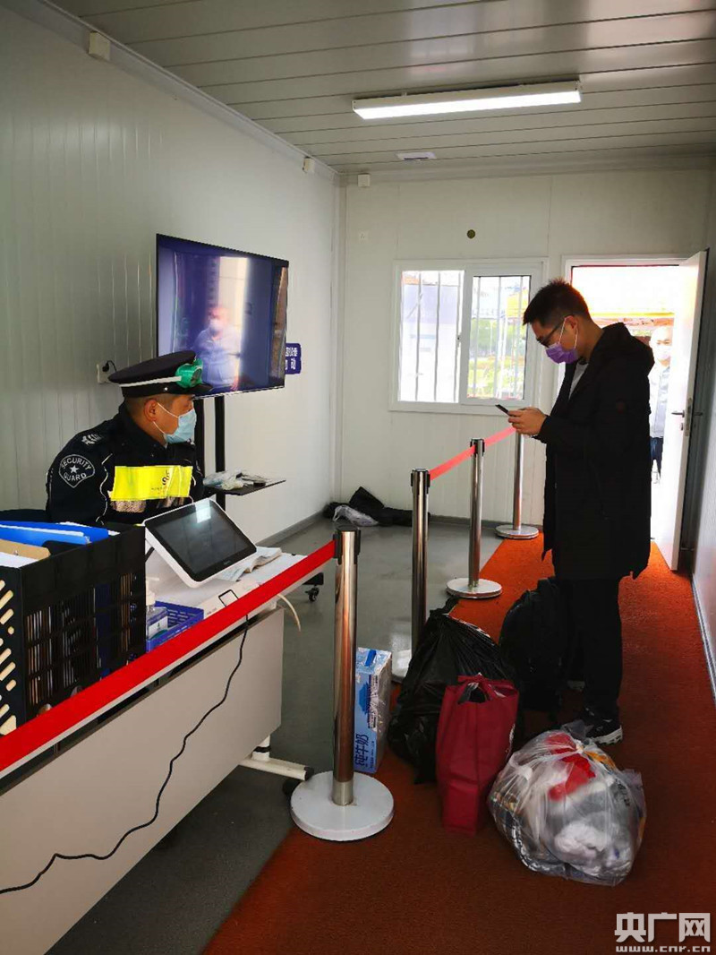 返校學(xué)生正在測(cè)溫箱內(nèi)接受測(cè)溫和查證(央廣網(wǎng)發(fā) 復(fù)旦大學(xué)供圖)