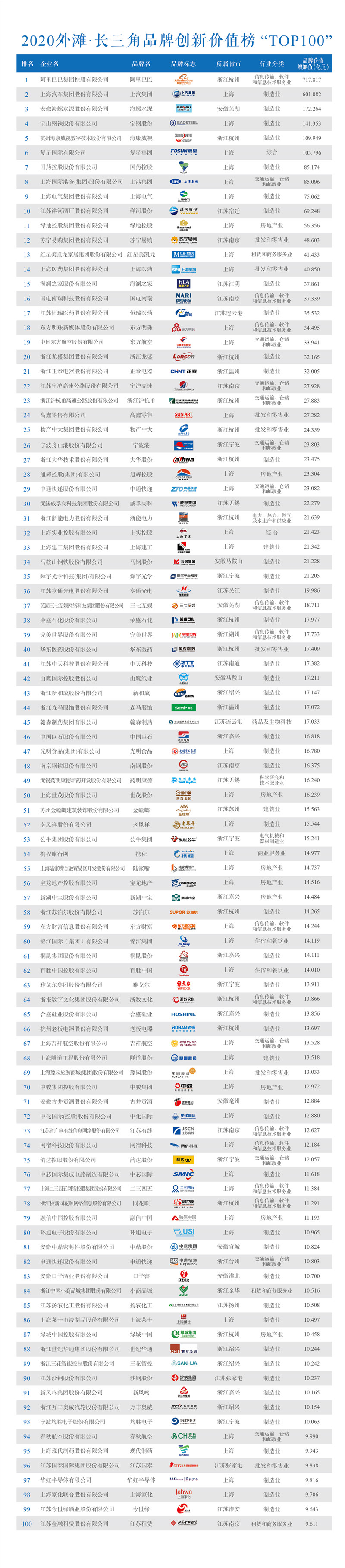 今年,為更好的助推國(guó)家長(zhǎng)三角發(fā)展戰(zhàn)略和上海“四大品牌”建設(shè),首次發(fā)布了“2020年外灘·長(zhǎng)三角品牌創(chuàng)新價(jià)值榜(TOP100)”和再次發(fā)布“2020年外灘·上海品牌創(chuàng)新價(jià)值榜(TOP50)”。