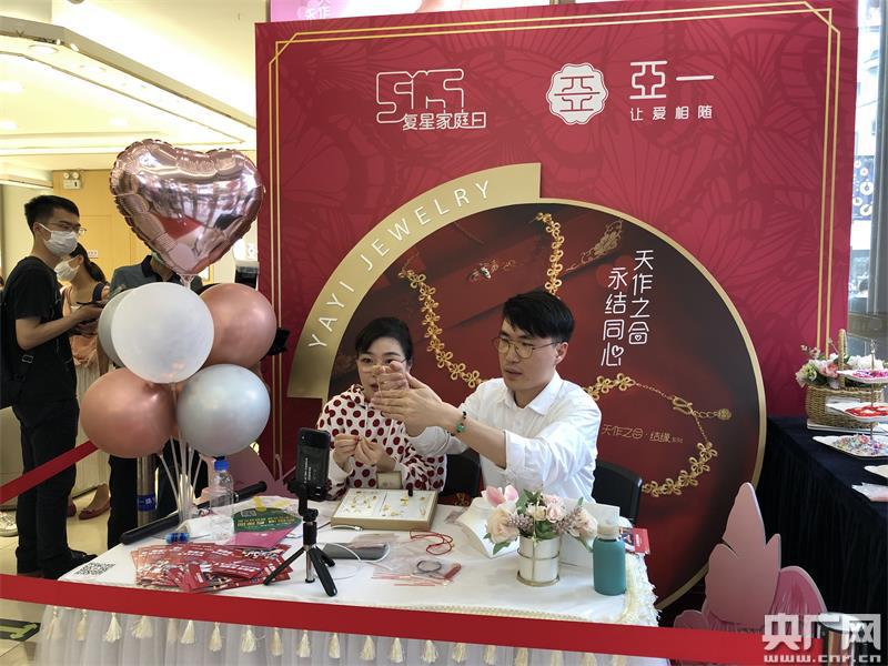 豫園的亞一黃金店里,主播在向淘寶消費(fèi)者介紹商品(央廣網(wǎng)記者 韓曉余 攝)