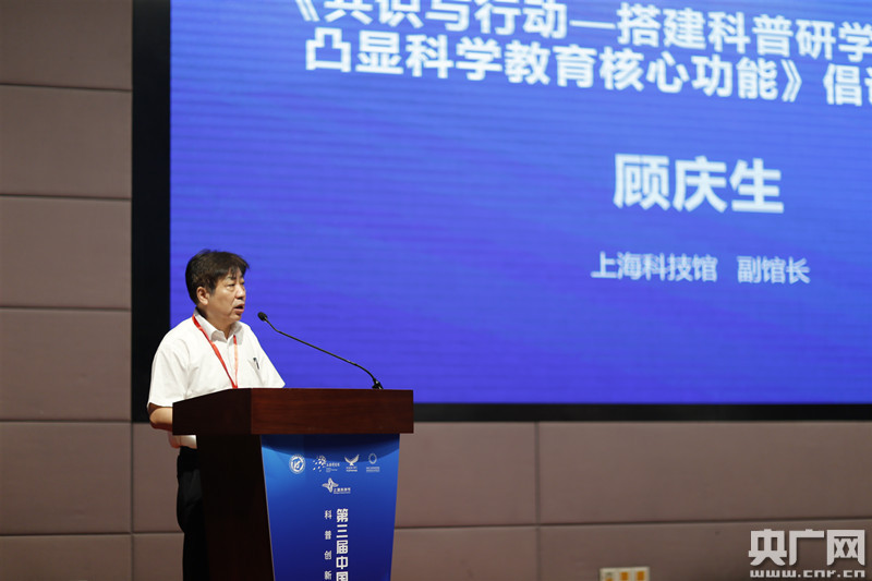在開幕式上,上海科技館副館長顧慶生發(fā)布《共識與行動——搭建科普研學(xué)合作平臺,凸顯科學(xué)教育核心功能》倡議書。并作主旨報告《從場館資源到研學(xué)課程:探索與實(shí)踐》。