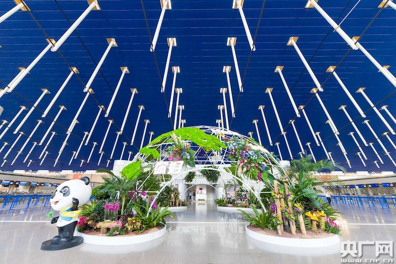 浦東機場營造了“綠水青山”別樣江南特色的氛圍展示區(央廣網發 上海機場供圖)