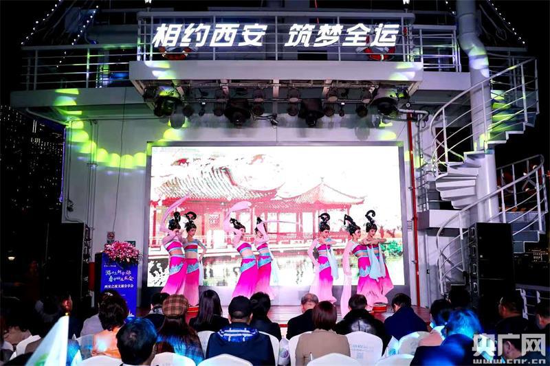 晚上七時許,伴著靈動悠揚的仿唐樂舞《綠腰踏鼓》,黃浦江“船長8號”游輪鳴笛啟航。在近2小時的夜游巡航中,來自西安市的西咸新區、曲江新區、高新區等文旅資源區域代表分別做了精彩分享,向與會嘉賓推出了西安文旅的新熱點、新場景和打卡新地標,展示文化西安、時尚西安、創意西安的活力形象。舞蹈《七夕》至純至美,詩朗誦《熔鑄文明迎全運》慷慨激昂、歌曲《來西安住些日子吧》溫暖親切……
