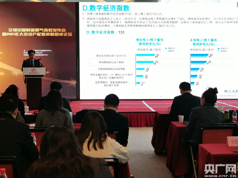 央廣網上海12月9日消息(記者吳善陽)交通銀行今天發布《交銀中國財富景氣指數報告》(總第62期)。隨著國民經濟復蘇勢頭加快,生產和消費需求持續回暖,工業平穩較快增長,服務業加快恢復,就業市場穩步改善,金融市場運行整體穩定,反映在本期小康家庭財富景氣指數較上期提升1個百分點,小康家庭經濟景氣指數較上期上升2個百分點,收入增長指數、投資意愿指數和流動資產投資意愿指數與上期持平,不動產投資意愿指數較上期升1個百分點。疫苗研發與上市利好及美國大選結果進一步明晰,避險情緒有所緩解,投資者對未來預期更趨于樂觀。