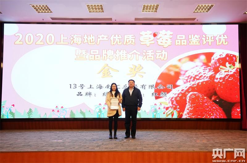 南匯瓜果有限公司獲得草莓金獎。上海市農(nóng)業(yè)農(nóng)村委員會黨組成員、副主任葉軍平為金獎獲得單位頒獎。