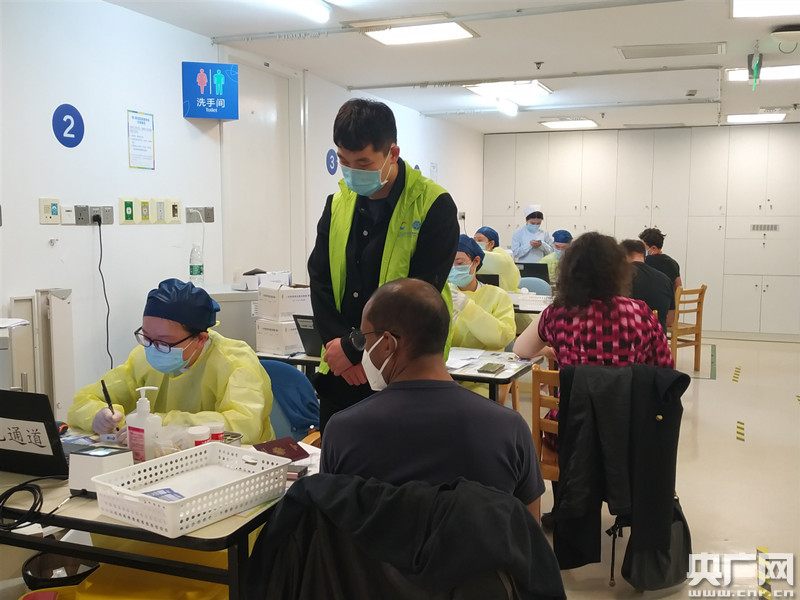 志愿者協(xié)助外籍人士在接種時進(jìn)行翻譯、溝通(央廣網(wǎng)記者林馥榆 攝)