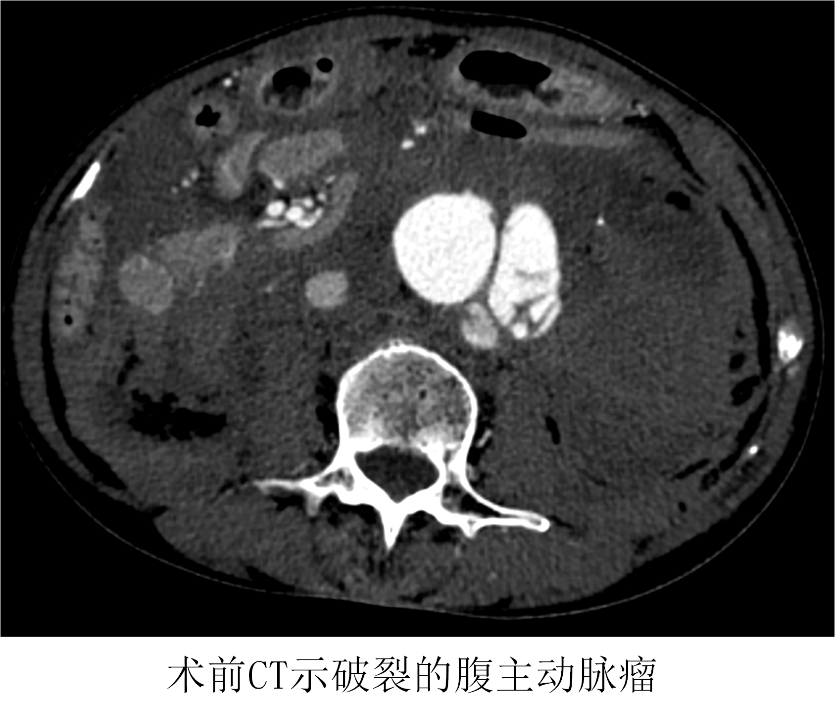 凌晨3點,64歲的張女士轉(zhuǎn)至仁濟醫(yī)院急診時,四肢冰涼、意識不清,心率130次/分,血壓僅70/30mmHg,處于嚴(yán)重休克狀態(tài)。當(dāng)日值班的醫(yī)師李一男和張根潤第一時間趕到急診,立即開放靜脈通路,補液、輸血抗休克治療,同時完善術(shù)前檢查和準(zhǔn)備工作。檢查結(jié)果顯示,患者的實際情況比想象中的還要嚴(yán)重,血紅蛋白已經(jīng)下降到了30g/L,僅是正常人的1/4,也就是說患者腹主動脈瘤破裂出血的量已經(jīng)超過了全身血量的一半以上,如不盡快手術(shù)封堵破口,患者隨時會有死亡風(fēng)險,可謂是命懸一線。