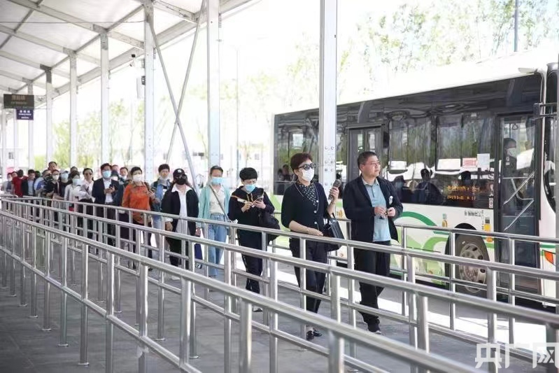 花博會開幕首日,各類集約交通共運送各類人員19634人次(央廣網發 上海市交通委供圖)
