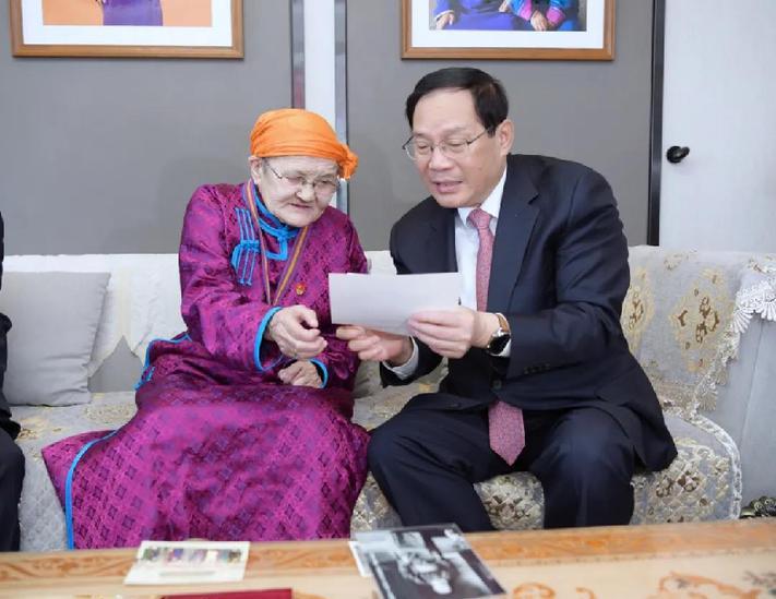 對內(nèi)蒙古人民的深情厚誼表示誠摯謝意和崇高敬意,祝愿都貴瑪老人健康長壽、生活幸福