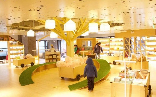 大型遮陽裝置以樹形的藝術結構開始引領你進入這個滿足你童年想象的平行宇宙。